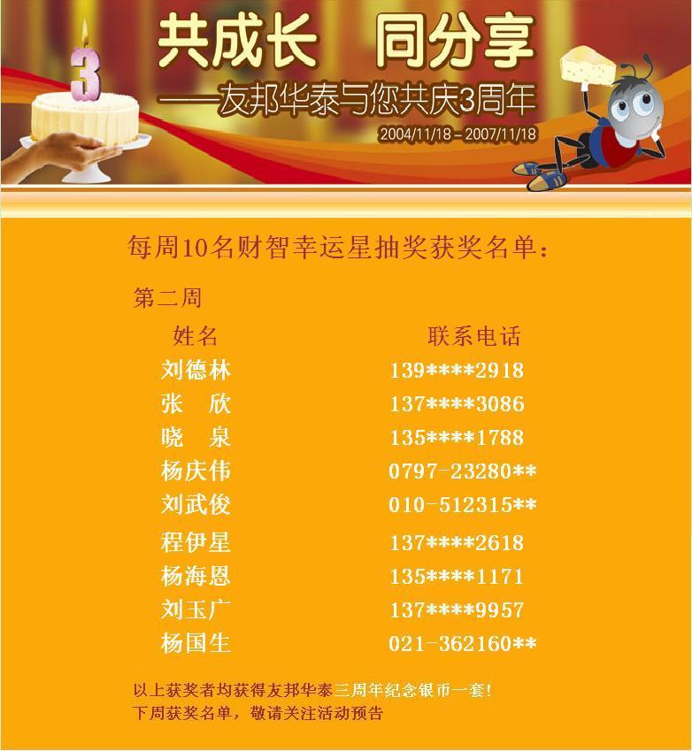 友邦華泰三周年慶征文活動(dòng)第二周獲獎(jiǎng)名單