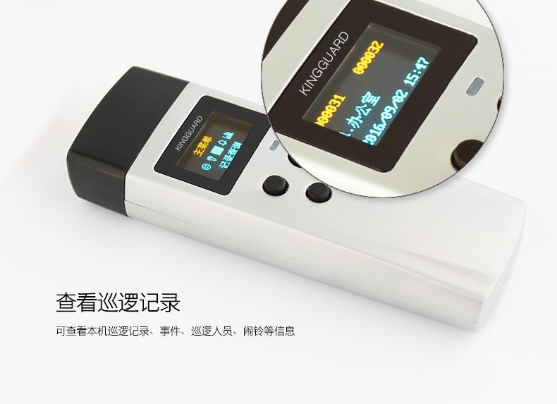 唯實互聯(lián)巡更中文機3代,鋅鋁合金電鍍外殼,雙色OLED顯示屏, 陽光下仍然清晰可見,巡邏導(dǎo)航:自動提示下一巡檢地點名稱, 本機查看巡邏記錄、事件、巡邏人員、鬧鈴等。