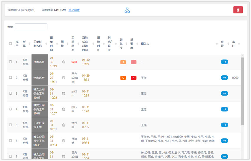 選擇您關(guān)注的場所,報單監(jiān)控中心將實時監(jiān)控該場所中所有未完成的工單及完成進(jìn)度。